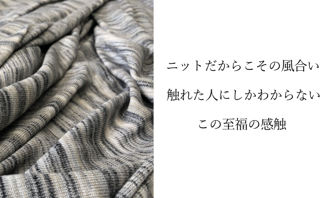 ニットの編機で1本の絹糸から編み上げた上質なシルク100%の上質素材。
