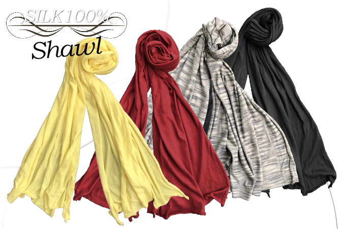・ニットの機械で1本の極細シルク糸をギュッと薄く編み込んで出来上がったシルク100%ストールです。